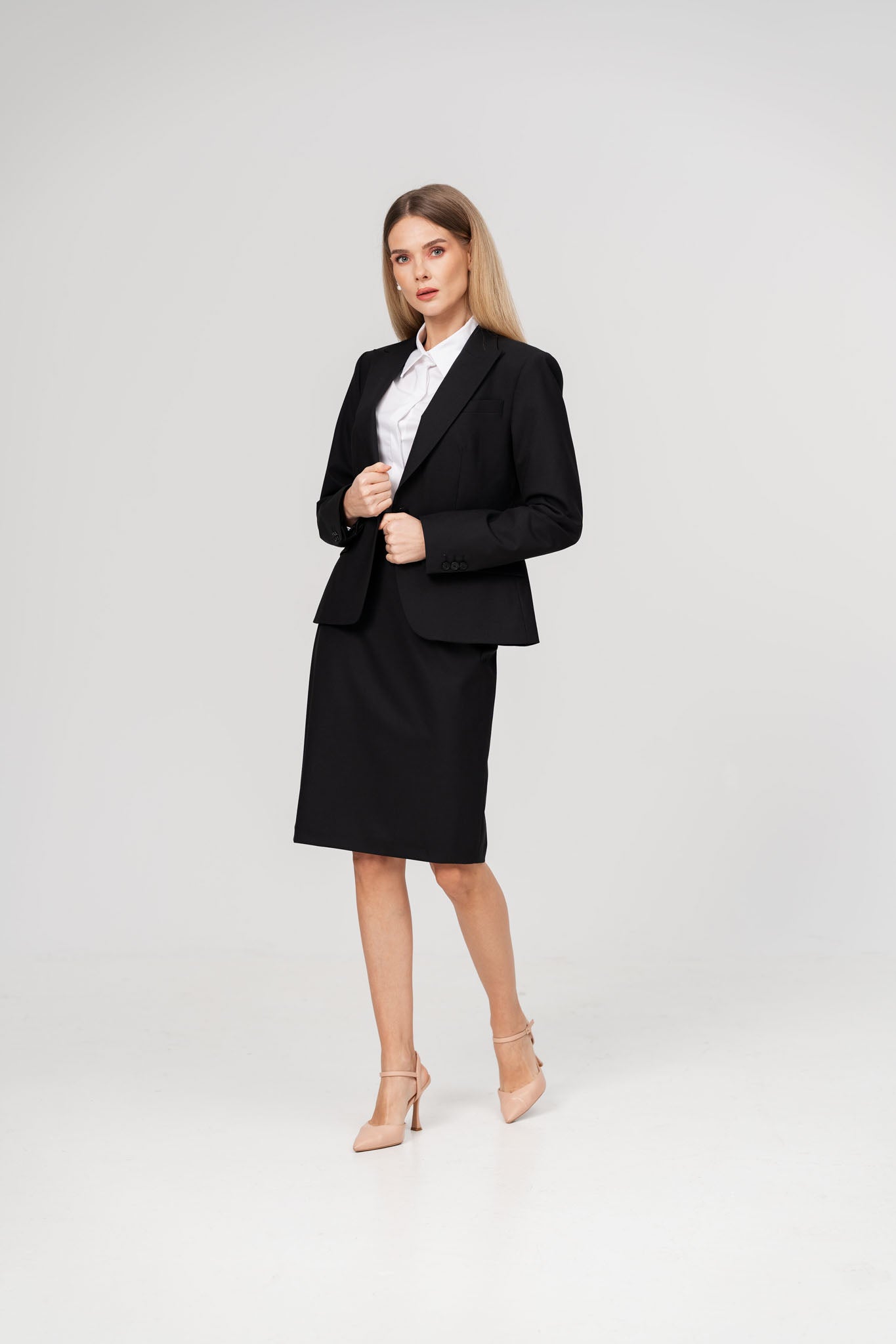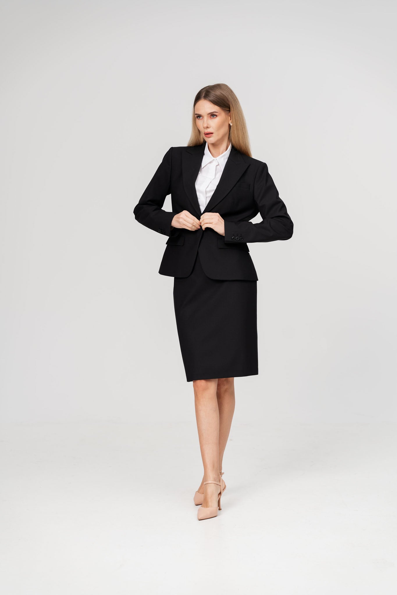 Costum office cu sacou si fusta negru