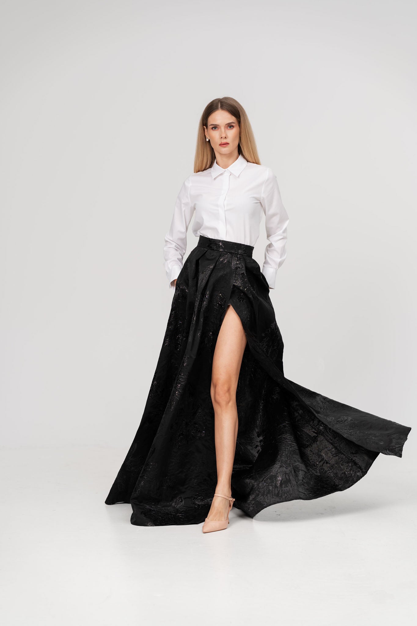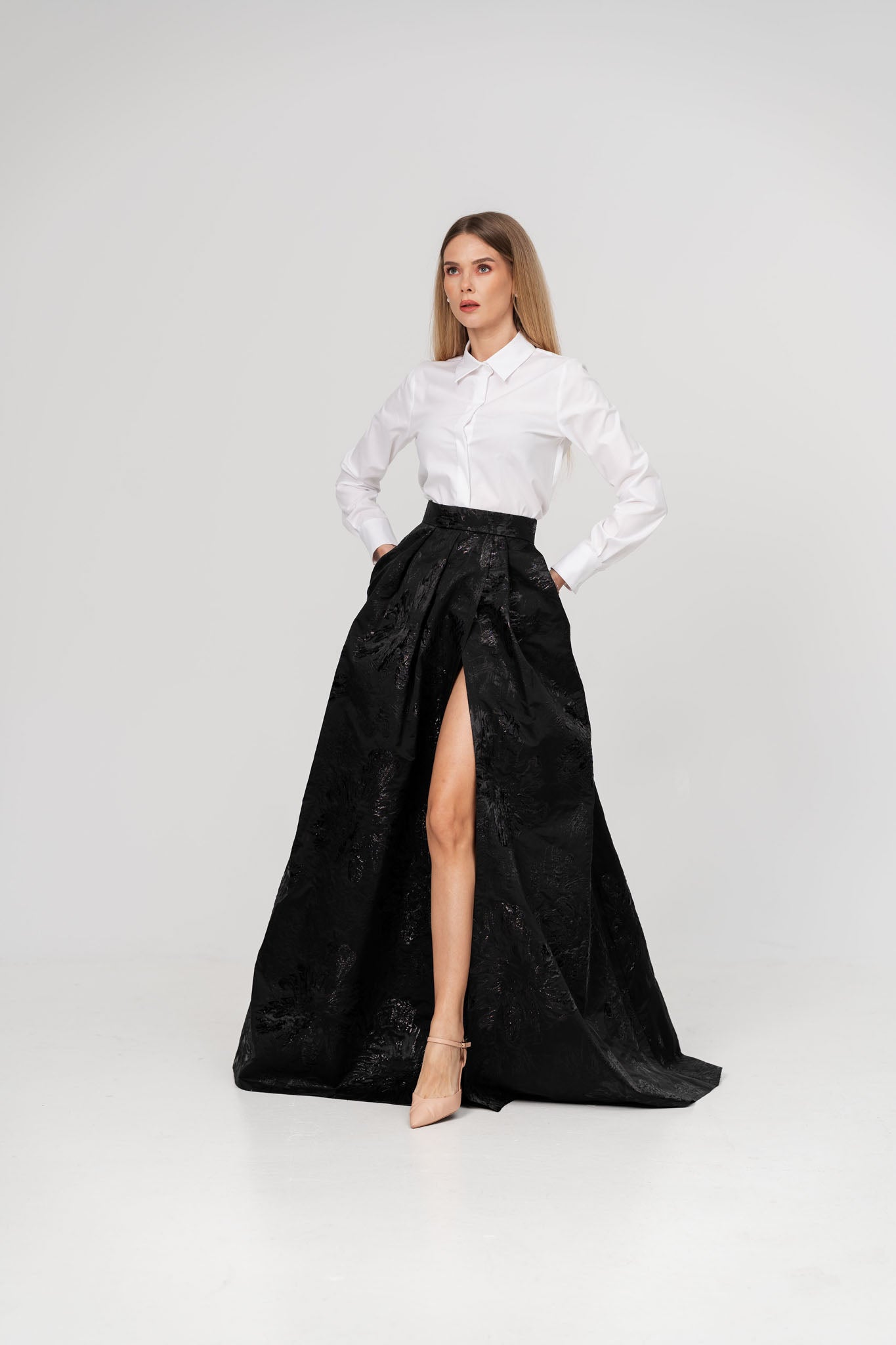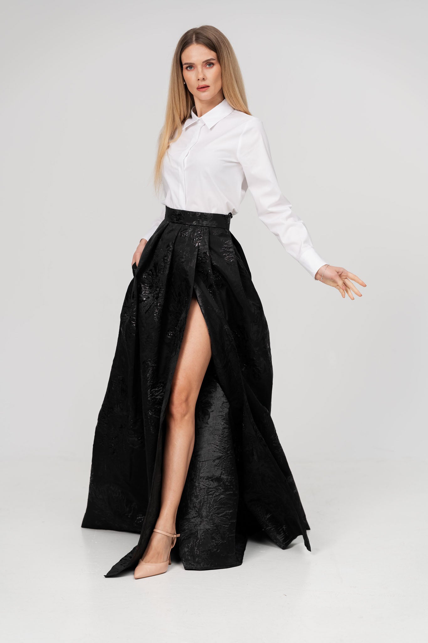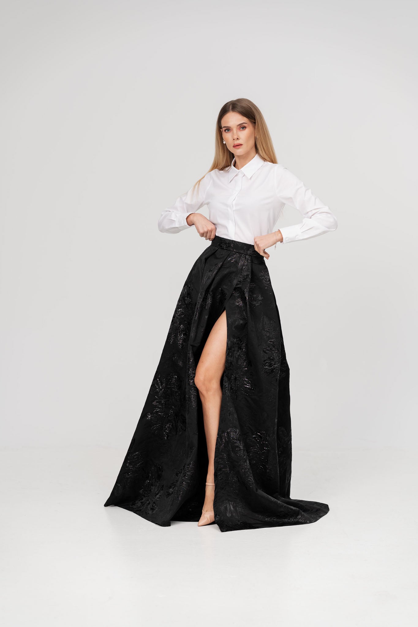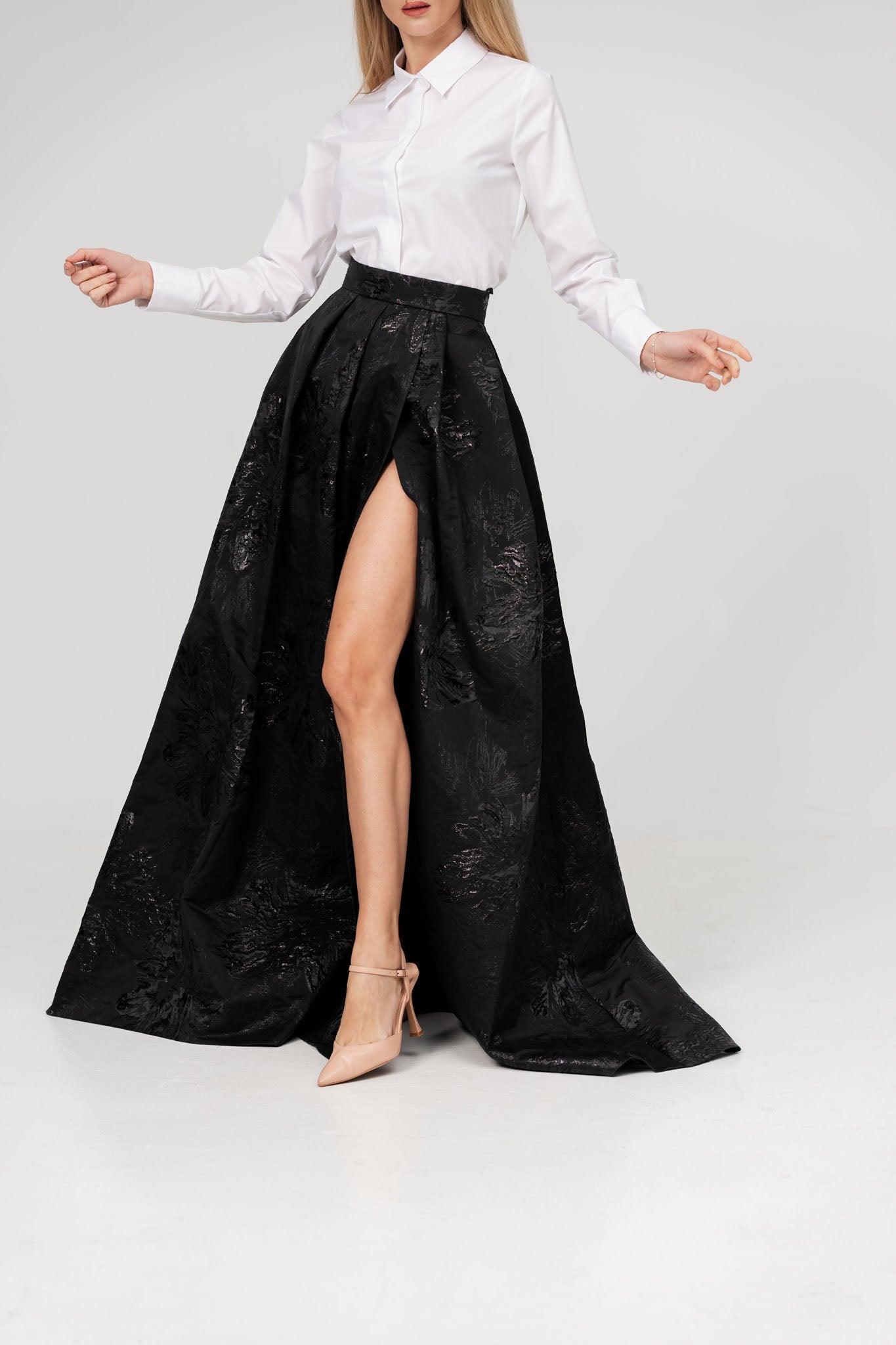 Fusta neagra eleganta din tesatura brodata