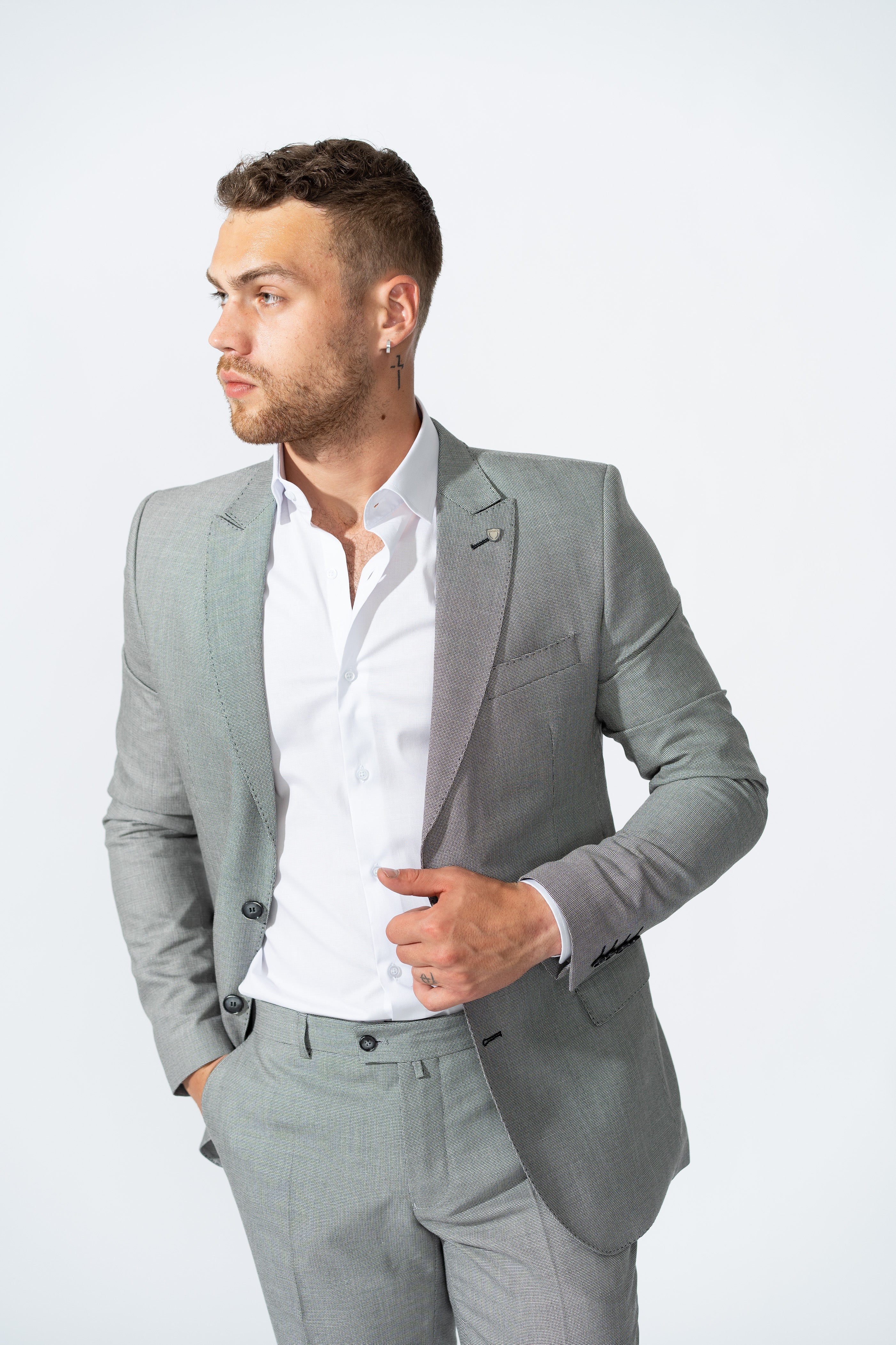 Descopera eleganta costumului gri slim – potrivit pentru orice ocazie formala sau semi-formala. Fabricat dintr-un material de buna calitate, acest costum ofera confort de lunga durata, ideal pentru ore intregi de purtare. Costumul gri este ideal pentru intalniri de afaceri, nunti sau evenimente speciale, fiind usor de asortat cu diverse camasi si cravate. Detaliile de finisare, cum ar fi nasturii eleganti si captuseala interioara adauga un plus de stil si distinctie.